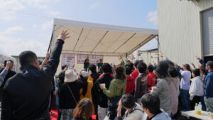 1週間前に発表された当日の天気予報は雨。しかし「何としてでも晴天の中で開催したい!」という強い思いが天に届き、開始時間に合わせるかのように曇天だった空に晴れ間が差し、やがて晴天に恵まれました。
