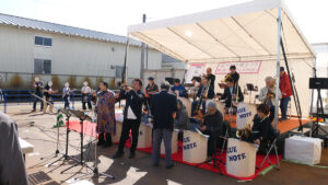 前日は降雨の中で設営と準備を進めました。「明日は絶対に晴れる」と信じ、迎えた当日は風が強い一日となりましたが、暖かな春の日差しが気持ち良い蔵まつり日和となりました。